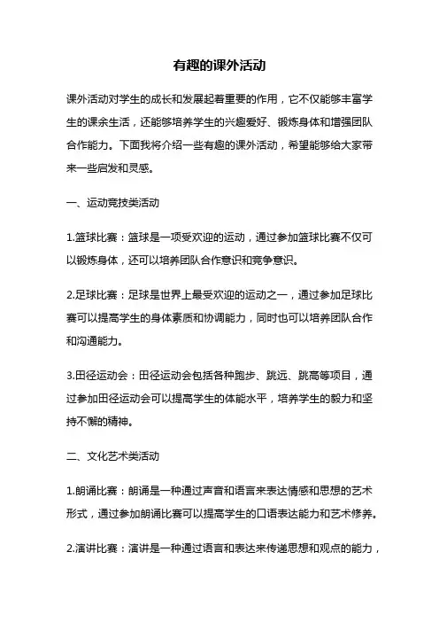 有趣的校园活动可以为学生们带来欢乐和放松,同时也可以促进同学们之间的交流和互动。