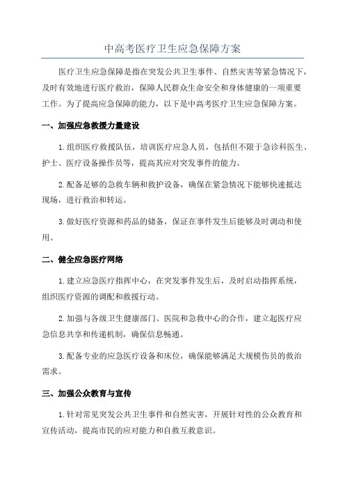 三、实施方案1. 建立高考医疗保障团队为了保障高考期间的考生健康,需要组建专业的高考医疗保障团队。