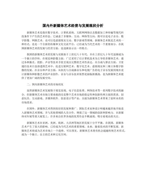 国内外新媒体艺术经营与发展现状分析新媒体艺术是指在数字技术、计算机系统、互联网网络以及数据加工和传输等现代科技条件下产生的艺术形态。