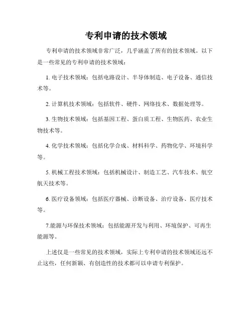 专利保护的技术领域专利保护是一种针对发明创造的知识产权保护方式,它在技术领域具有重要的作用。