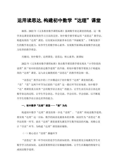 一、初中数学“达理”课堂——“读”为先构建初中数学“达理”课堂的第一步是“读理”。