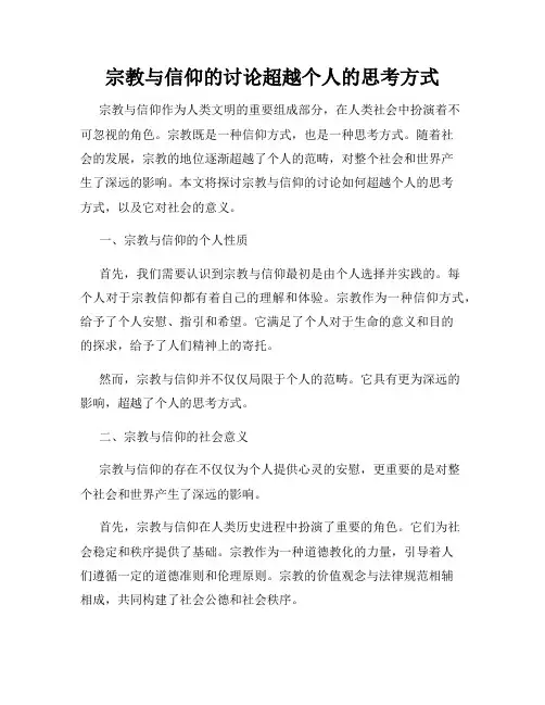 三、宗教与信仰的讨论超越个人的思考方式,体现在以下几个方面:首先,宗教与信仰的讨论涉及到社会层面的议题。
