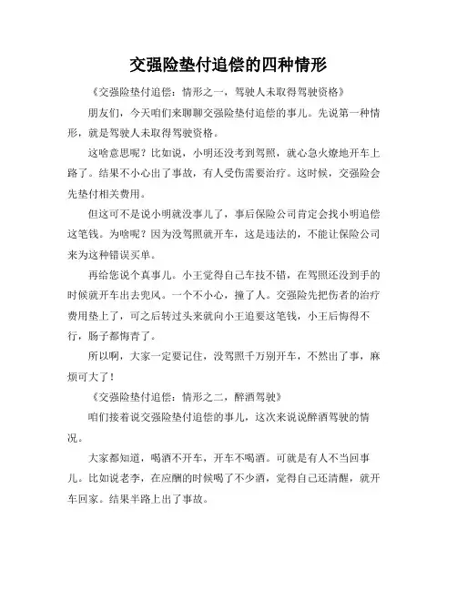 交强险垫付追偿的四种情形《交强险垫付追偿:情形之一,驾驶人未取得驾驶资格》朋友们,今天咱们来聊聊交强险垫付追偿的事儿。