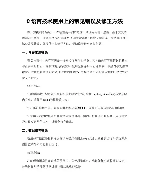 C语言技术使用上的常见错误及修正方法在计算机科学领域中,C语言是一门广泛应用的编程语言。