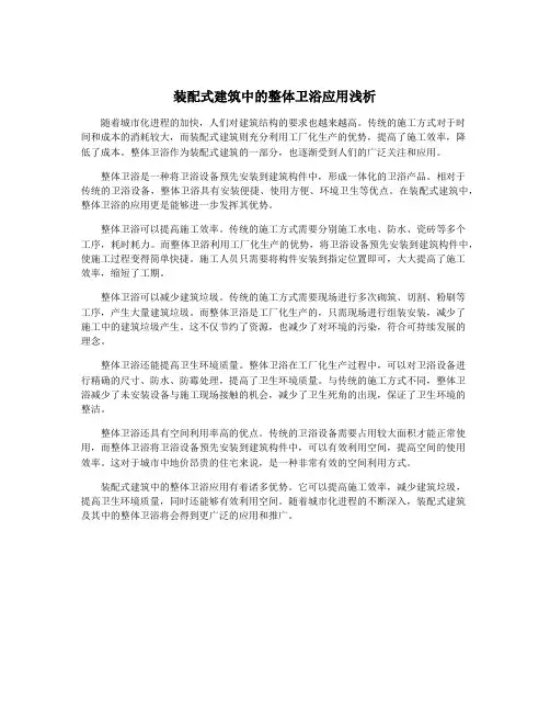 装配式建筑中的整体卫浴应用浅析随着人们对生活品质的不断提高和环保意识的不断增强,装配式建筑在未来的发展中将会成为主流。