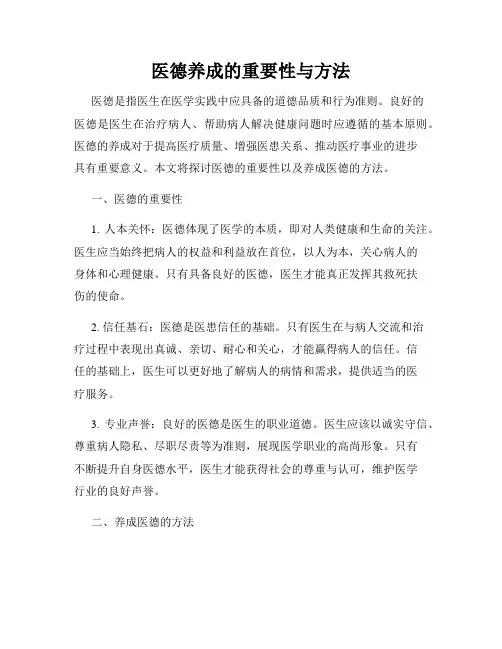 四、培养医者仁心医德的方法医者仁心是可以培养和提升的。