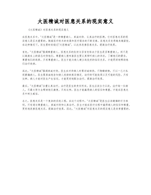 二、医者仁心带来良好的医患关系医患关系是医学领域中的核心问题。