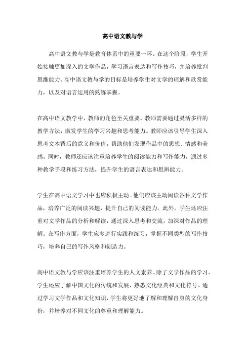 总之,高中语文教与学旨在培养学生的文学素养、语言表达能力和批判思维能力。