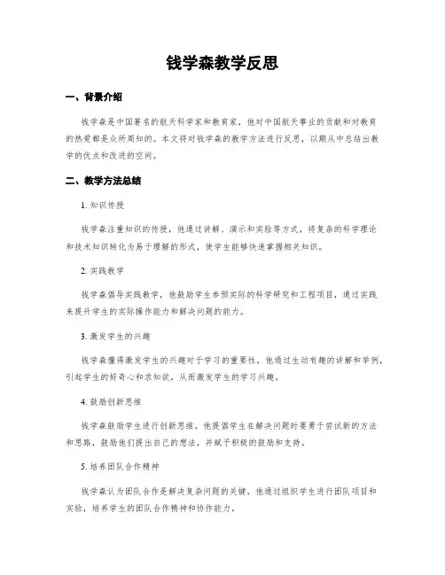 钱学森教学反思钱学森是中国著名的科学家和教育家,他对教学的反思和总结对于我们今天的教育工作者仍然具有重要的借鉴意义。
