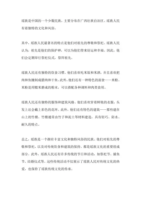 二、瑶族习俗的传承与演变1. 婚俗瑶族的婚俗是他们文化传承中重要的一部分。