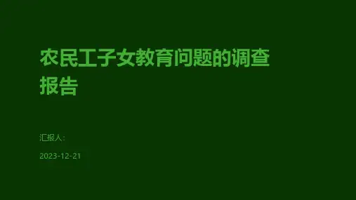 关于农民工子女教育问题的调查报告一、前言农民工子女教育问题自2000年代末以来,备受关注。