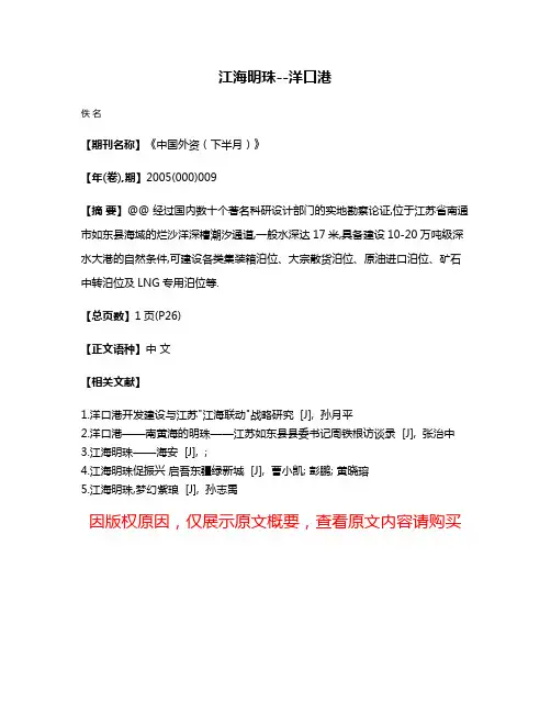 1.洋口港开发建设与江苏"江海联动"战略研究 [J], 孙月平