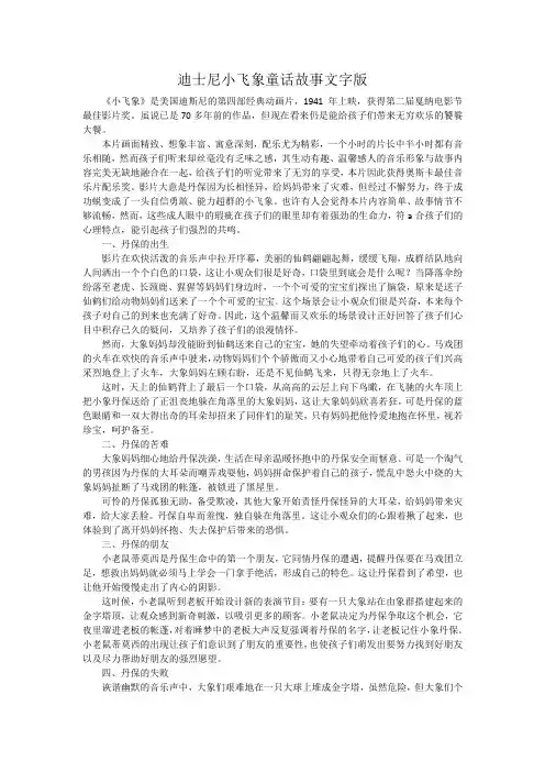 迪士尼小飞象童话故事文字版《小飞象》是美国迪斯尼的第四部经典动画片,1941年上映,获得第二届戛纳电影节最佳影片奖。