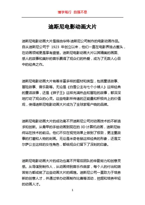 迪斯尼电影动画大片迪斯尼电影动画大片是指由华特·迪斯尼公司制作的电影动画作品。