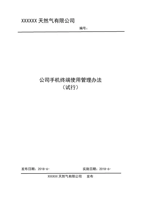 三、手机终端的管理1. 终端配备1.1 公司为员工配备手机终端设备,并由公司专门管理部门负责发放、保管和回收。
