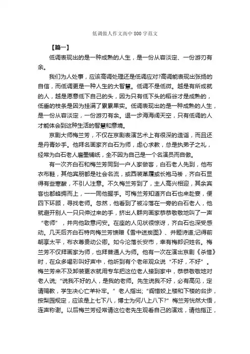 低调做人作文高中800字范文【篇一】低调表现出的是一种成熟的人生,是一份从容淡定、一份游刃有余。
