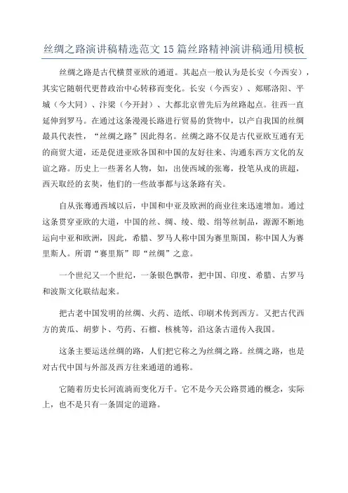 一、丝绸之路的历史渊源丝绸之路的起源可追溯到西汉时期,当时中国的丝绸产业已逐渐兴盛起来。