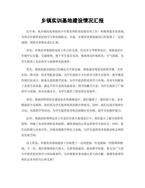 乡镇实训基地建设情况汇报近年来,我乡镇高度重视青少年教育和职业技能培训工作,积极筹建实训基地,为青少年提供更好的学习和实践机会。