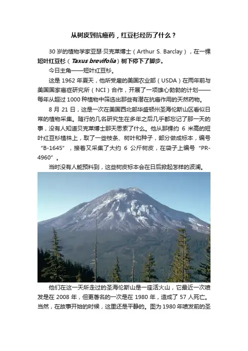 从树皮到抗癌药,红豆杉经历了什么?30岁的植物学家亚瑟·贝克莱博士(Arthur S. Barclay),在一棵短叶红豆杉(Taxus brevifolia)树下停下了脚步。