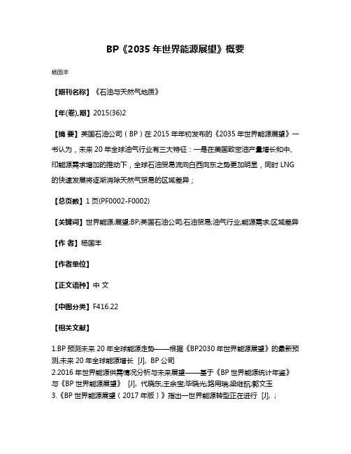 【关键词】世界能源;展望;BP;英国石油公司;石油贸易;油气行业;能源需求;区域差异【作者】杨国丰