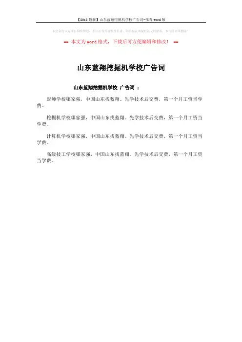 【2018最新】山东蓝翔挖掘机学校广告词-推荐word版