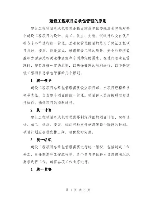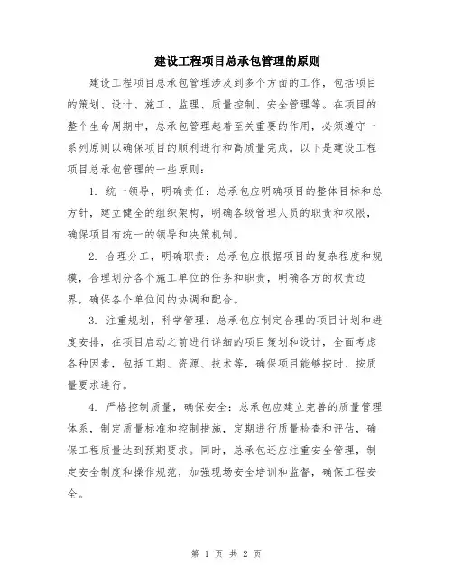 为确保项目的顺利进行,总承包管理需要遵循一些原则。