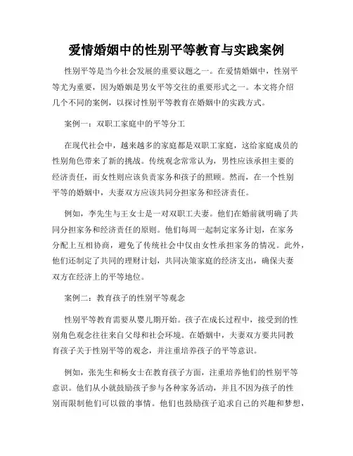 爱情婚姻中的性别平等教育与实践案例性别平等是当今社会发展的重要议题之一。