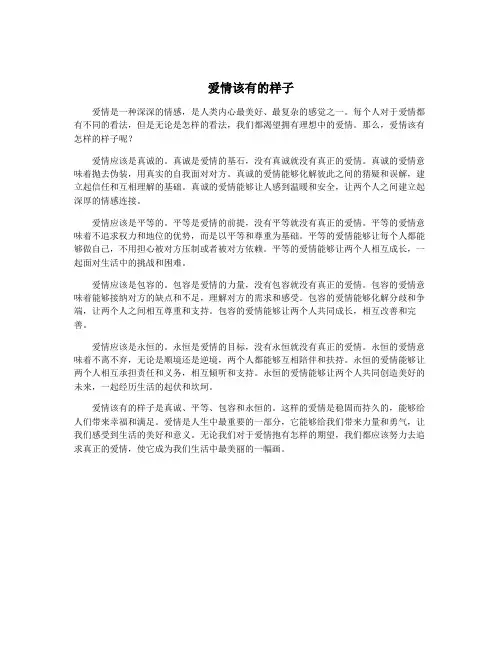 爱情该有的样子爱情是一种深深的情感,是人类内心最美好、最复杂的感觉之一。