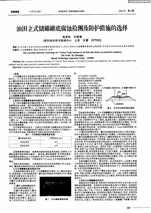 关键词:油罐腐蚀防护日常管理1油罐腐蚀的现状腐蚀是金属表面受到周围介质的电化学作用而引起的一种破坏现象。