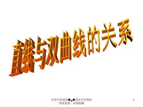 当直线与双曲线的渐进线平行时 , 把直线方 程代入双曲线方程 , 得到的是一次方程 , 根 本得不到一元二次方程 , 当然也就没有所谓 的判别式了 。 结论:判别式依然可以判断直线与双曲线的 位置关系 !