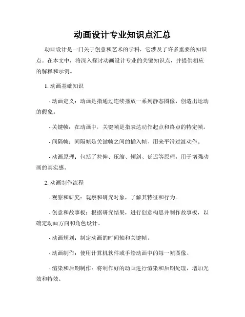 动画设计专业知识点汇总动画设计是一门关于创意和艺术的学科,它涉及了许多重要的知识点。