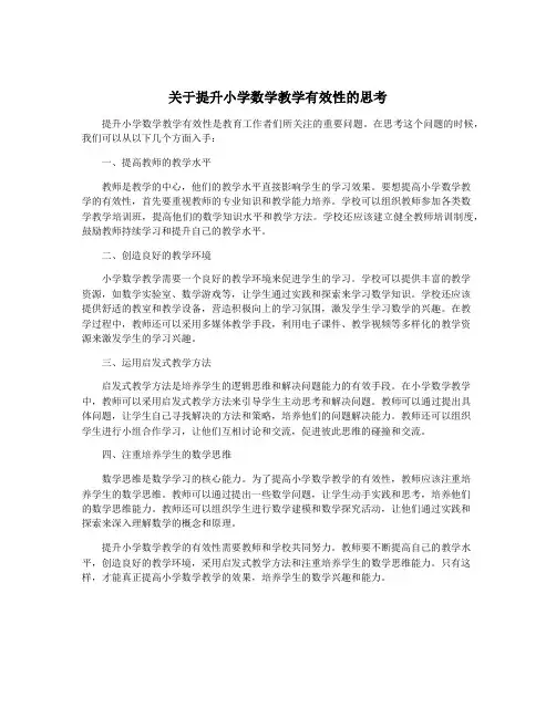 关于提升小学数学教学有效性的思考提升小学数学教学有效性是教育工作者们所关注的重要问题。