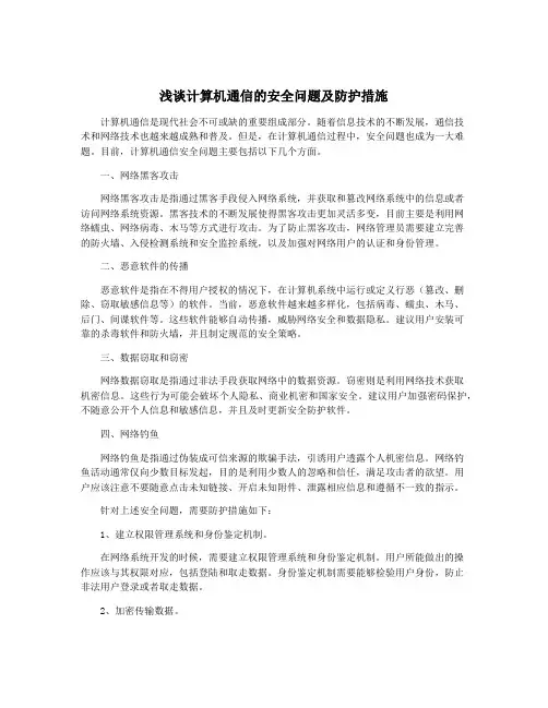 浅谈计算机通信的安全问题及防护措施随着计算机科技的不断发展,计算机通信在我们的日常生活中扮演着越来越重要的角色。