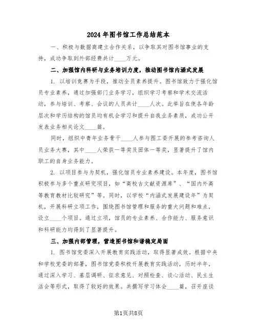 2024年图书馆工作总结简单版二零____年国家图书馆进行了机构重组,基础业务尝试外包等各项改革。