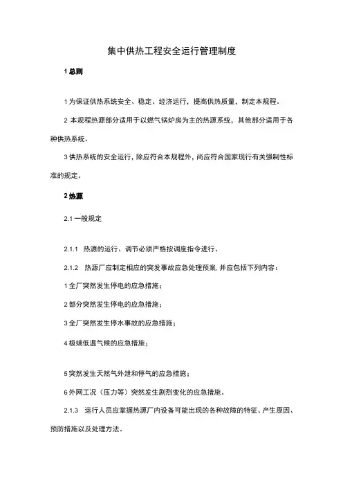 集中供热工程安全运行管理制度1总则1为保证供热系统安全、稳定、经济运行,提高供热质量,制定本规程。