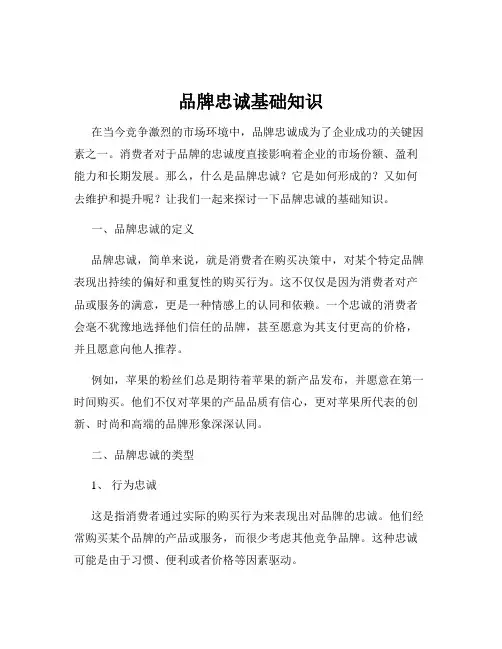 品牌忠诚基础知识在当今竞争激烈的市场环境中,品牌忠诚成为了企业成功的关键因素之一。