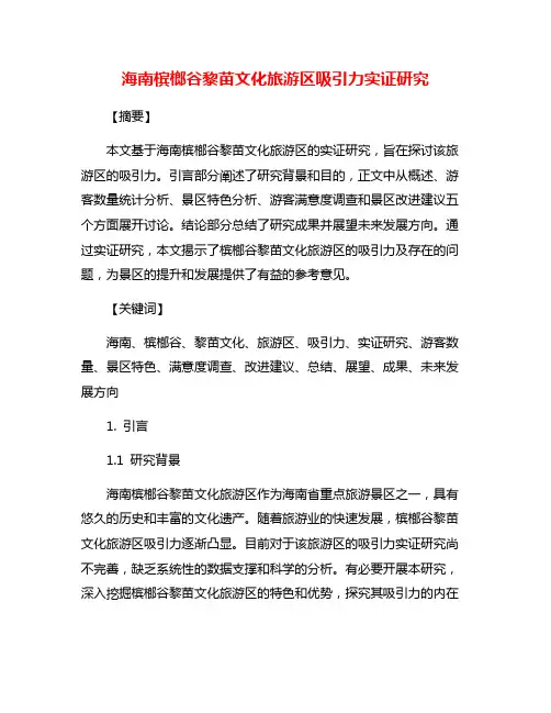 [24](三)旅游吸引力影响因素研究旅游吸引力的影响因素比较繁多,内容广泛,且不同的旅游目的地相关旅游吸引力影响因素也会有差异,通过理论结合实证可以更科学地对其进行分析和研究。