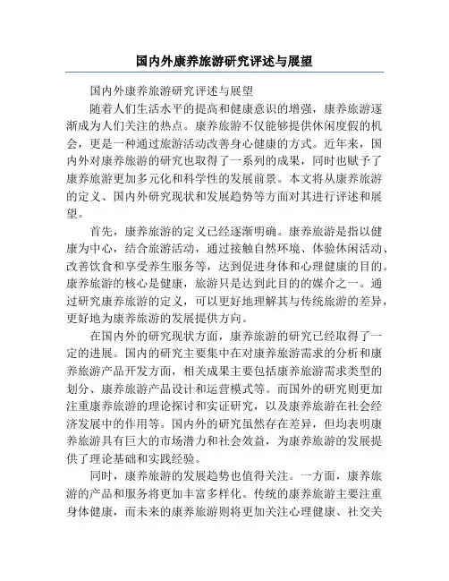国内外康养旅游研究评述与展望国内外康养旅游研究评述与展望随着人们生活水平的提高和健康意识的增强,康养旅游逐渐成为人们关注的热点。