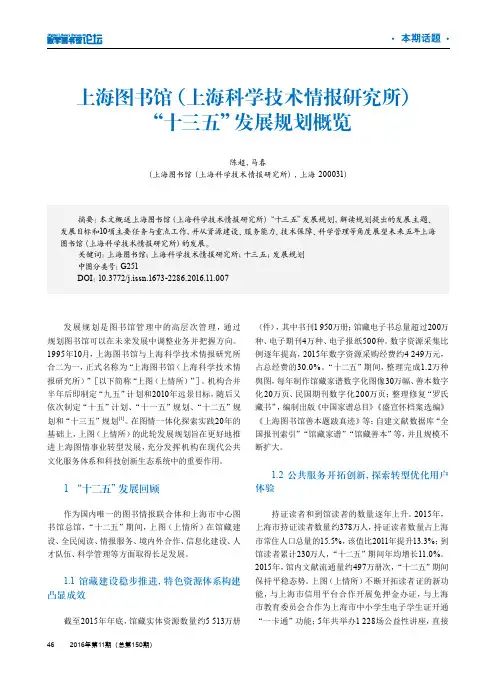 高校图书馆十三五规划随着信息时代的到来,高校图书馆在学术研究和教育教学中扮演着不可替代的角色。
