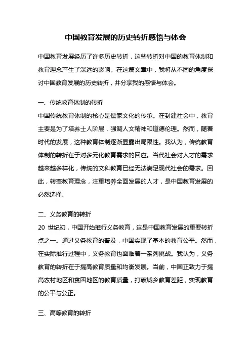 三、现代教育的改革与创新3.1 教育体制改革20世纪80年代以来,中国进行了一系列教育体制改革,包括学制改革、课程改革、考试制度改革等。