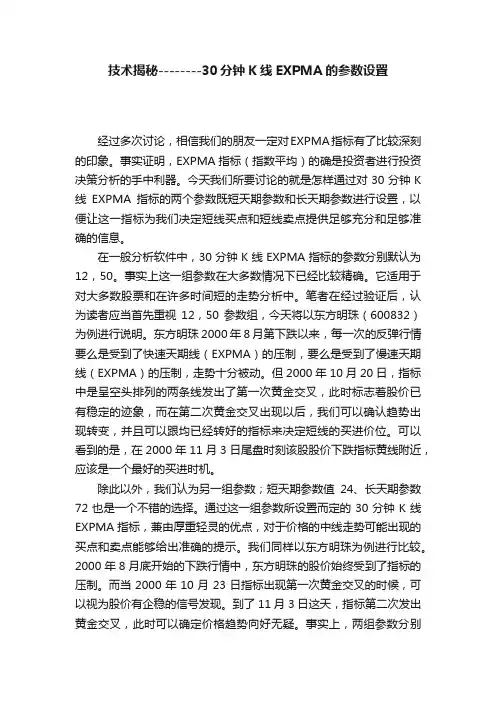 技术揭秘--------30分钟K线EXPMA的参数设置经过多次讨论,相信我们的朋友一定对EXPMA指标有了比较深刻的印象。