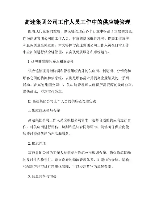 高速集团公司工作人员工作中的供应链管理随着现代企业的发展,供应链管理在各个行业中扮演了重要的角色。