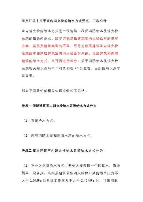 重点汇总!关于室内消火栓的给水方式要点,三科必考室内消火栓的给水方式是一级消防工程师消防给水及消火栓系统的相关知识点。