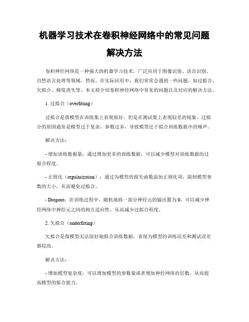 2. 梯度消失或梯度爆炸在神经网络的训练过程中,梯度消失和梯度爆炸是另一个常见的问题。