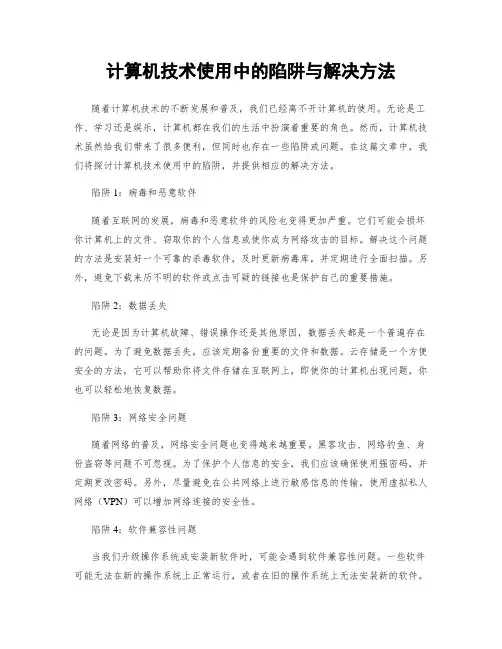 计算机技术使用中的陷阱与解决方法随着计算机技术的不断发展和普及,我们已经离不开计算机的使用。