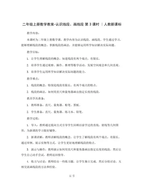 二年级上册数学教案-认识线段、画线段第3课时|人教新课标教学内容:本课时为二年级上册数学课,教学内容为认识线段、画线段。