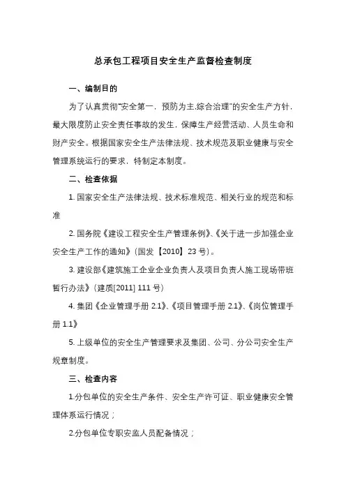 二、工程安全生产检查制度范本1.制度目的及依据工程安全生产检查制度的目的是确保工程项目在施工过程中安全无事故发生,依据《中华人民共和国安全生产法》、《建筑施工工程安全生产管理规定》等相关法律法规。