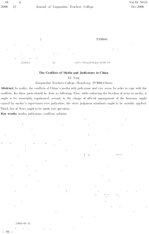 二、传媒与司法:矛盾、冲突与竞合尽管传媒与司法存在关联性,但它们之间的矛盾和冲突也不可忽视。