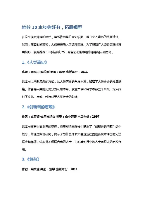 书籍推荐:拓展视野的好书推荐介绍在快速发展的现代社会中,知识的获取和学习变得尤为重要。