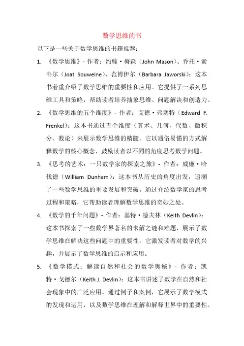 以下是一些关于数学思维的书籍推荐: